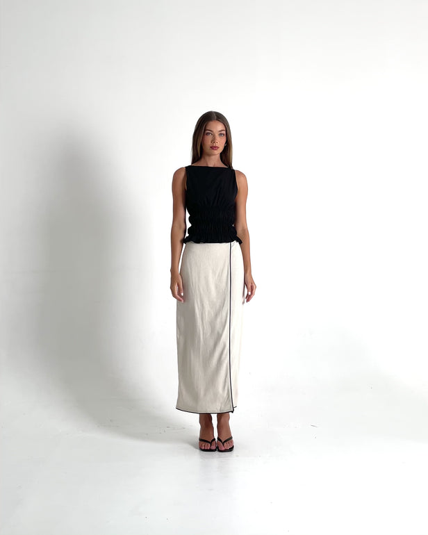 Sleek meets timeless. Elevate your look with the Allura Top – Black, featuring chic ruching and a polished high neckline.