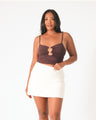 Bamboo Blonde’s take on the classic fitted tank – the Cecile Jersey Top takes you from day to night. Featured in our signature super soft jersey fabrication, this women’s fitted tank top features double front keyhole with contrast bead detail.