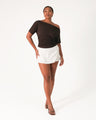 A timeless white skort with a tailored fit and wrap front — soft, structured, and endlessly versatile.