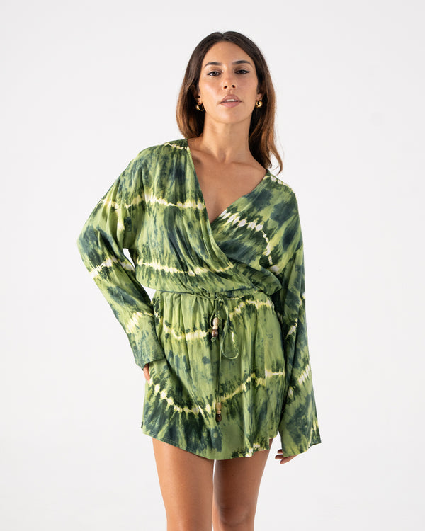 Wrap yourself in effortless style 🌿 The Sasha Wrap Playsuit in Amazon Tie Dye is your ultimate one-and-done summer outfit. Flowy, flattering, and fun! #BambooBlonde #WrapItUp #TropicalStyle