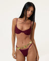 With a structured underwire fit and an ultra-flattering silhouette, the Carnation Underwire Bikini Top is designed to sculpt and support while maintaining an elevated, feminine feel. Crafted in a rich wine hue, this style offers both shape and comfort, making it perfect for all-day wear. Pair it with the matching Carination Bikini Bottom for a seamless, sophisticated set.