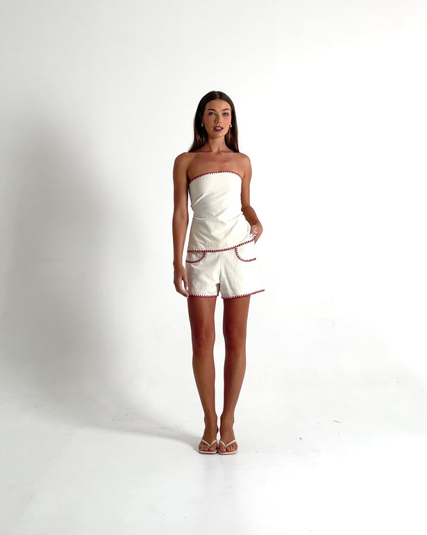 Easy, breezy, and effortlessly chic. The Iris Shorts – Natural Red Stitch are a summer staple with breathable linen and bold contrast stitching.