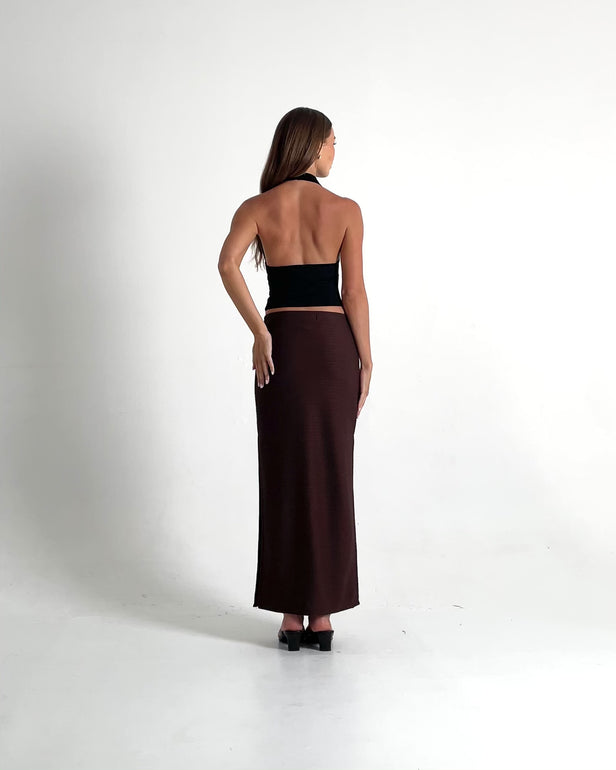 Effortless movement, endless style. Meet the Bella Jersey Maxi Skirt – Brown Plisse.