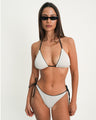 The Camellia Bikini Bottom, our classic triangle cut with edge. Constructed in our signature soft plisse rib fabric, these cheeky bikini bottoms feature contrast piping and adjustable double side tie feature.