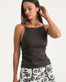 Sleek and sophisticated, this women’s high neck cami top is our new must have staple. The Luna top features elevated neckline with thin shoulder straps. With back zip closure and ruched detailing that creates a snug fit through the chest and, this fit skims the hips and accentuates the waist.